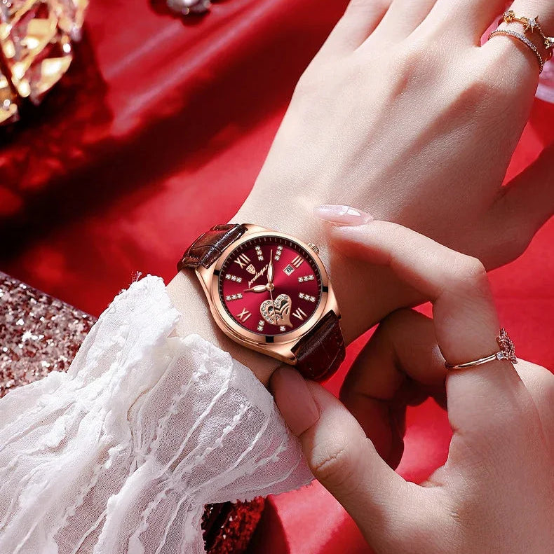 Dodaj nutę romantyzmu do swojej stylizacji z damskim zegarkiem „Love” od Molie. Zjawiskowa, bordowa tarcza ozdobiona motywem serca i delikatnymi kryształkami tworzy wyjątkowy, elegancki wygląd. Zegarek posiada niezawodny mechanizm kwarcowy i jest wyposażony w skórzany pasek, który zapewnia komfort noszenia i stylowy akcent. Idealny wybór na prezent lub wyjątkowy dodatek na wieczorne wyjścia.