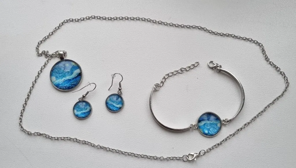 - Komplet składa się z naszyjnika, bransoletki i pary kolczyków