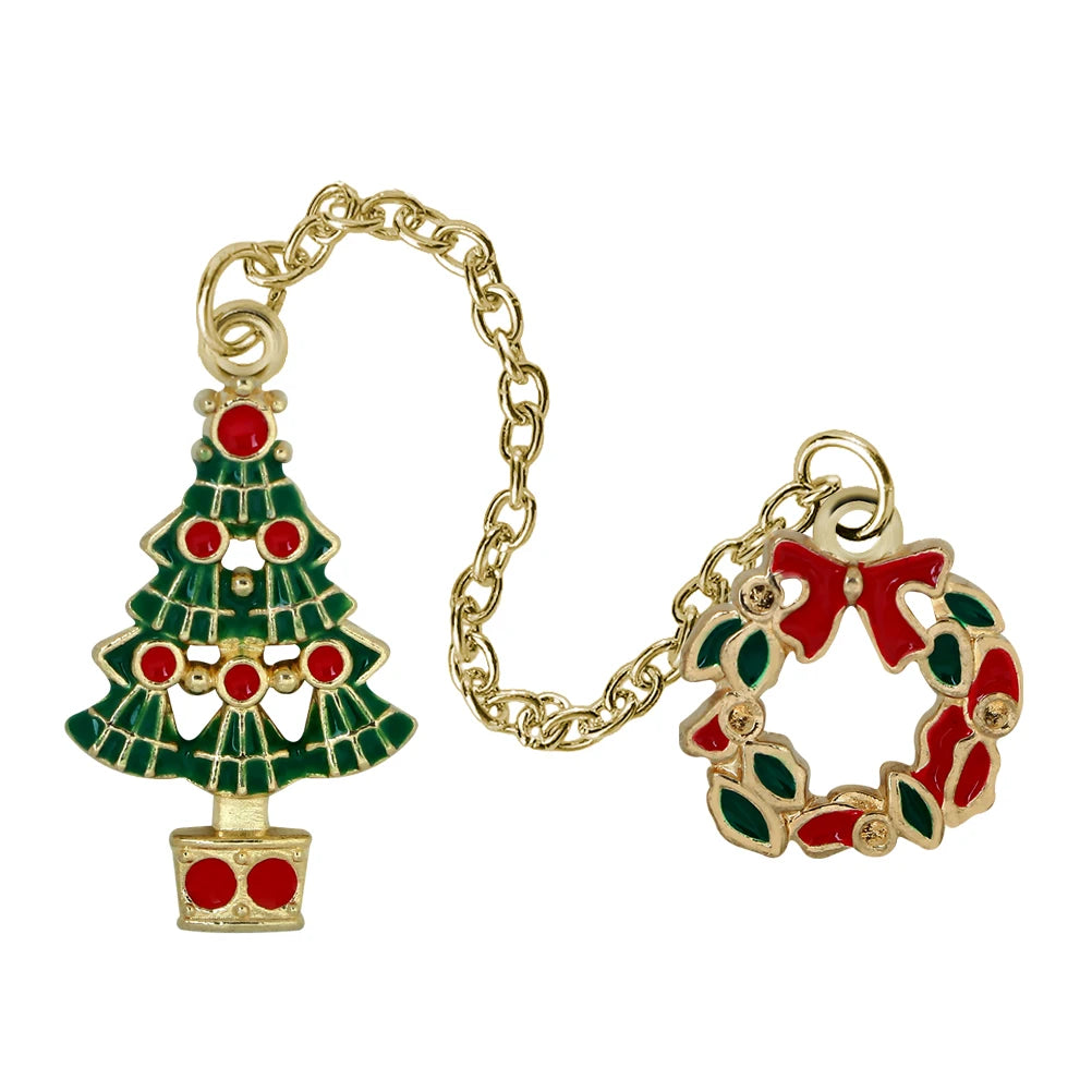 Świąteczna przypinka w kształcie choinki z ozdobnym łańcuszkiem to idealny akcent zimowych stylizacji. Doskonale wygląda na swetrze, kurtce, torbie, czy czapce. Mały, elegancki dodatek, który wprowadza świąteczny klimat i sprawdzi się jako prezent dla bliskich.
