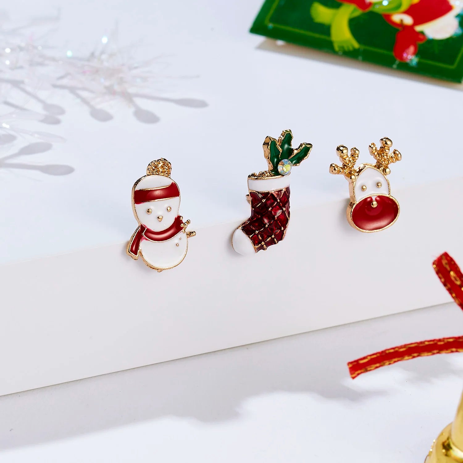 Zestaw przypinek świątecznych - bałwan, renifer, skarpeta